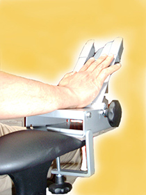 Diese Konstruktion kann auf eine Tischplatte neben der Tastatur des Computers, mit welchem man arbeitet oder auf der Armlehne des Sitzes montiert werden. Das Manual ermöglicht bei verschiedenen Einstellungen der Hand zum Unterarm im Handgelenk von 0 bis 90° differenzierte starke Dehnungen und Entspannungen der Beugemuskulatur der Finger, welche bei isometrischem Mudra-Training für die entsprechende Entspannung im Gehirn sorgen. Bei der Benutzung der Tastatur des Computers in der Kombination mit der Erstellung von Text, Tabellen oder Graphiken am Bildschirm ist eine intensive Zusammenarbeit der Beugemuskulatur der Hand mit den rasanten Muskelbewegungen der Augen nach links und rechts, oben und unten und von links unten nach rechts oben und umgekehrt je nachdem wie das entstehende Bild am Bildschirm dies erfordert. Die Benützung des Mudramanuals in den obligatorischen Erholungspausen von fünf Minuten pro Stunde sorgt für Entspannung des Nervensystems, wenn die Augen sich vom Bildschirm abwenden. Das Mudramanual® enthält nur vier Schwingkörper für die vier Finger der Hand oder fünf, d.h. mit einem zusätzlichen Schwingkörper für den Daumen. Die harmonische Schwingfrequenz ist zwischen 2 bis 6 Hz einstellbar. Mit einem flexiblen Adapter kann das Gerät an der linken oder rechten Armlehne je nach Bedarf angebracht werden.